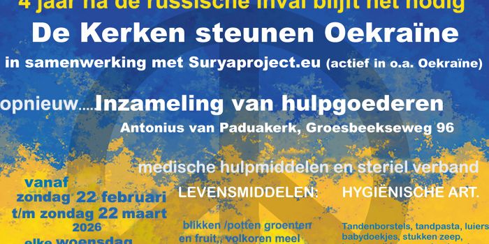 We hebben vier jaar geleden, in februari 2022, onze eerste inzameling voor Oekraïne aangekondigd. Bijna alle kerken in Nijmegen en Overbetuwe werden uitgenodigd om mee te doen.